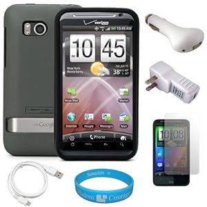 Protect and personalize your Verizon Wireless HTC Thunderbolt 4G Android Smartphone with this Durable Hard Back Cover and its SoftTouch Silicone Skin. Elegant form-fitting design hard shell back cover. Three layers for maximum protection (Hard Case + Skin + Screen Protector).Protects your phone without adding a lot of bulk. Provides Maximum protection against unnecessary scratches and scuffs. Form-fitting case cover that still allows access cell phone's all function. A Screen Protector film is included for HTC Thunderbolt 4G. Package also includes Universal USB-Car Charger Cigarette Lighter Adapter allows charging in your car via USB cable connection. Regulated voltage allows charging for cell phones that can be charged via an USB connection. Please note: Some devices will require a CHARGING USB cable in order to charge via this USB-Car Charger Cigarette Lighter Adapter. Package also includes USB White Travel/Home Charger Adapter, Universal USB-Home Travel Charger Adapter allows charging at home, in the office or when traveling via USB cable connection. Regulated voltage allows charging for cell phones that can be charged via an USB connection. Package also includes Mirco USB Data Cable when used with appropriate software, allows you to manage, backup, restore, download synchronize and upload your contacts and phonebook. INCLUDES! SumacLife TM Wisdom Courage Wristband