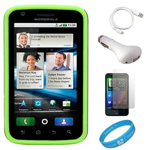 (Grey & Green) Vertex Duo Protector Case with Screen Protector for Motorola Atrix 4G (MB860) AT;T Android Smartphone + White USB Car Charger + White micro USB Data Cable + SumacLife TM WisdomCourage Wristband