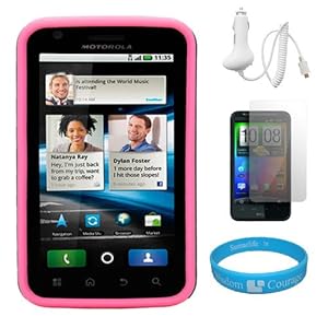 Protect and personalize your Motorola Atrix 4G (MB860) AT;T Android Smartphone with this Durable Hard Back Cover and its SoftTouch Silicone Skin. Elegant form-fitting design hard shell back cover. Three layers for maximum protection (Hard Case + Skin + Screen Protector).Protects your phone without adding a lot of bulk. Provides Maximum protection against unnecessary scratches and scuffs. Form-fitting case cover that still allows access cell phone's all function. A Screen Protector film is included for HTC Thunderbolt 4G. Package also includes a Car Charger Cigarette Lighter Adapter suitable allows charging your Smartphone and unlimited playing time while in the car. Enhanced internal circuitry to manage charging status and prevent over- and under-charging. Integrated electrical fuse to prevent damage to phone or battery. INCLUDES! SumacLife TM Wisdom Courage Wristband