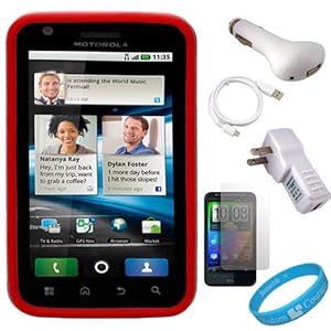 Protect and personalize your Motorola Atrix 4G (MB860) AT;T Android Smartphone with this Durable Hard Back Cover and its SoftTouch Silicone Skin. Elegant form-fitting design hard shell back cover. Three layers for maximum protection (Hard Case + Skin + Screen Protector).Protects your phone without adding a lot of bulk. Provides Maximum protection against unnecessary scratches and scuffs. Form-fitting case cover that still allows access cell phone's all function. A Screen Protector film is included for HTC Thunderbolt 4G. Package also includes Universal USB-Car Charger Cigarette Lighter Adapter allows charging in your car via USB cable connection. Regulated voltage allows charging for cell phones that can be charged via an USB connection. Please note: Some devices will require a CHARGING USB cable in order to charge via this USB-Car Charger Cigarette Lighter Adapter. Package also includes USB White Travel/Home Charger Adapter, Universal USB-Home Travel Charger Adapter allows charging at home, in the office or when traveling via USB cable connection. Regulated voltage allows charging for cell phones that can be charged via an USB connection. Package also includes Mirco USB Data Cable when used with appropriate software, allows you to manage, backup, restore, download synchronize and upload your contacts and phonebook. INCLUDES! SumacLife TM Wisdom Courage Wristband