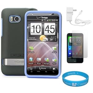 (Grey & Sky Blue) Vertex Duo Protector Case with Screen Protector for Verizon Wireless HTC Thunderbolt 4G Android Smartphone + White Micro USB Home Charger + SumacLife TM WisdomCourage Wristband