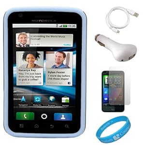 Protect and personalize your Motorola Atrix 4G (MB860) AT;T Android Smartphone with this Durable Hard Back Cover and its SoftTouch Silicone Skin. Elegant form-fitting design hard shell back cover. Three layers for maximum protection (Hard Case + Skin + Screen Protector).Protects your phone without adding a lot of bulk. Provides Maximum protection against unnecessary scratches and scuffs. Form-fitting case cover that still allows access cell phone's all function. A Screen Protector film is included for HTC Thunderbolt 4G. Package also includes Universal USB-Car Charger Cigarette Lighter Adapter allows charging in your car via USB cable connection. Regulated voltage allows charging for cell phones that can be charged via an USB connection. Please note: Some devices will require a CHARGING USB cable in order to charge via this USB-Car Charger Cigarette Lighter Adapter. Package also includes Mirco USB Data Cable when used with appropriate software, allows you to manage, backup, restore, download synchronize and upload your contacts and phonebook. INCLUDES! SumacLife TM Wisdom Courage Wristband