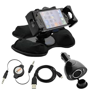iKross Car Dashboard Mount Holder+ USB Car Charger + Micro Cable + 3.5mm AUX Cable for Samsung Galaxy S 2 II / SII / Captivate Glide / Repp / Galaxy SII SkyRocket / Epic Touch 4G / T989 Hercules / Google Galaxy Nexus / Galaxy Note N7000 Android Smartphone