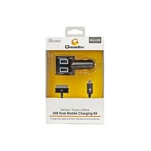 Qmadix USB Dual Mobile Apple/Micro Charging Kit - Car Charger - Retail Packaging - Black